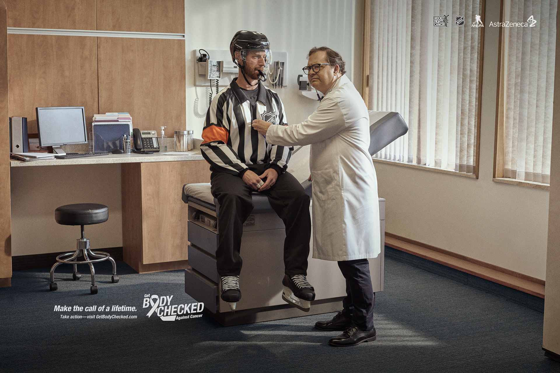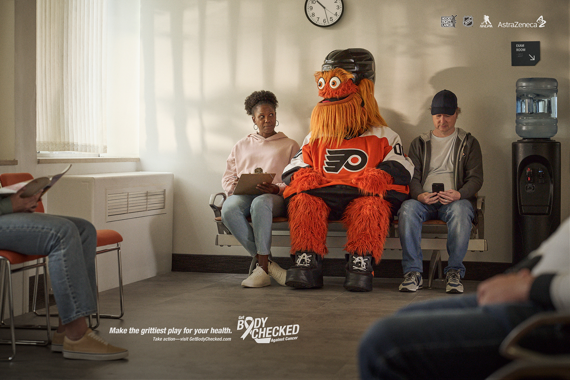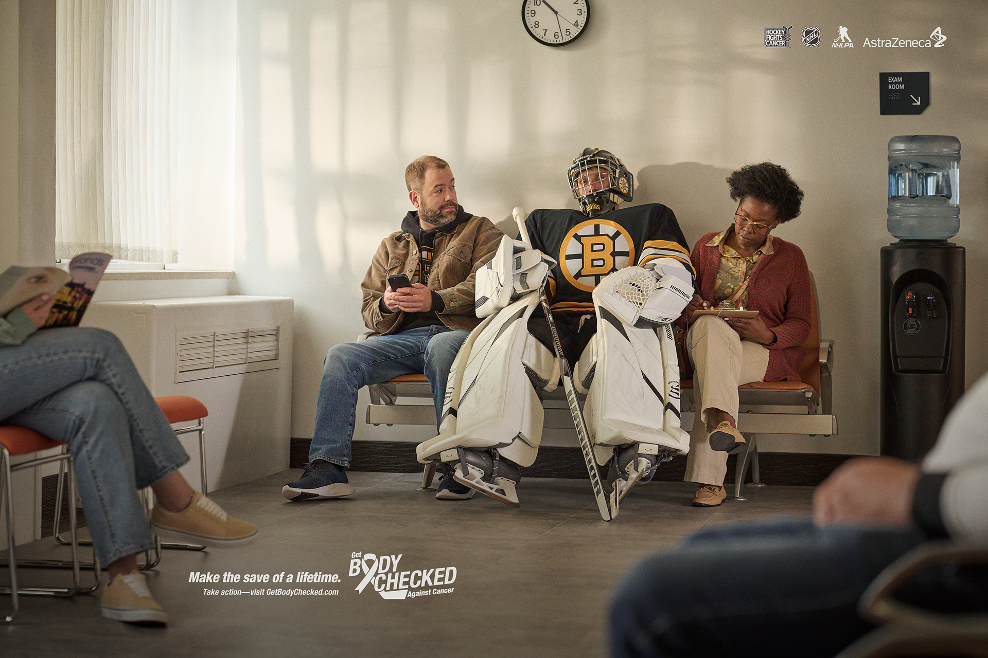 Hockey fans don’t usually talk about cancer screening. It’s just not part of the game. We teamed up with AstraZeneca and the NHL to launch Screen Time, the third season of Get Body Checked Against Cancer. A campaign that used the humor and quirks of hockey culture to spark real conversations about early detection. From mascots in clinics to goalies in waiting rooms, we reminded fans that taking care of your health is the most important play they can make. Role: Art Direction / Creative Direction